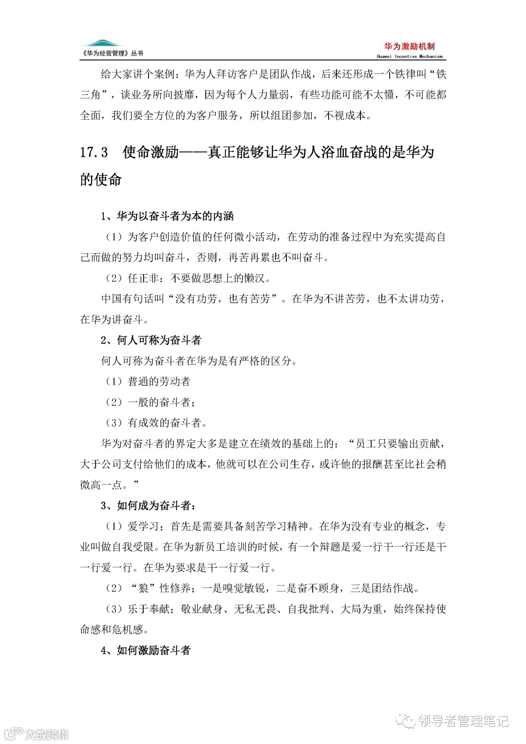 ►领导者说:★128页《华为激励机制(6版)》.docx下载。