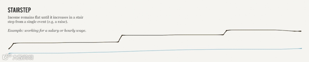 大多数人在一生中都会经历收入的阶梯式增长。当他们从小时工转到定薪岗位时,这将是收入的一个台阶。然后,每次加薪都是另一个台阶。在某些职业里,这些阶梯可能很小,而且很频繁;而在另一些职业里,这些阶梯可能间隔时间较长,而且幅度很大(从住院医生升为全职医生或律师成为律所合伙人)。