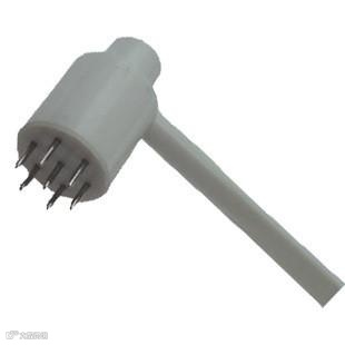 将7支直径0.4~0.6mm、长5mm的针分别装入针头的针盘内,周围6支中间1支,针间距离为2mm左右,针锋税利,针柄多为弹性柄,易于刺入皮肤刺破毛细血管,刺激后针迹处多有出血。