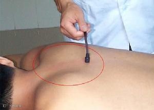(3)重叩:叩打时腕力较重,患者有明显痛感,局部皮肤发红,并可有轻度出血。多用于体格强壮、痛证、慢性皮肤病局部病灶以及背、肩、臀部等肌肉丰厚的部位。