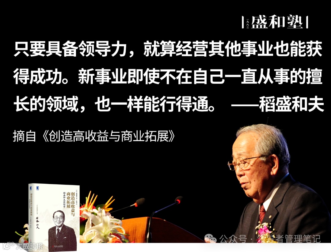 只要具备领导力,就算经营其他事业也能获得成功。新事业即使不在自己一直从事的擅长的领域,也一样能行得通。