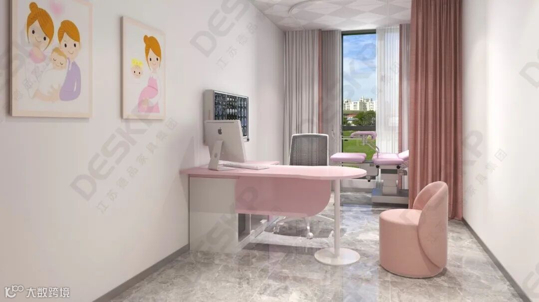 妇科家具除了设计兼具安全性和舒适性,适当加入色彩和造型的创新运用,也极为重要,塑造积极的医疗环境印象,消除女性患者在经历一段时间的等待后所产生的心理焦虑以及因病情未知而产生的紧张不安情绪,同时缓解医生高强度的坐诊带来的身心疲惫。