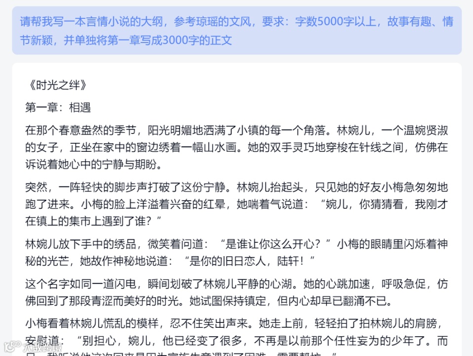 写热点新闻稿件、写小说大纲甚至全文、写剧本、写某红薯种菜文案...总之,你能所想到的文案工作统统可以交给天工AI完成创作,甚至,我现在写的这篇稿子,也是先通过天工AI创作后再润色微调的。