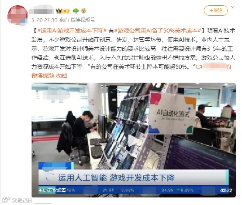 国内游戏公司也紧跟潮流,运用AI技术实现成本削减至少50%。