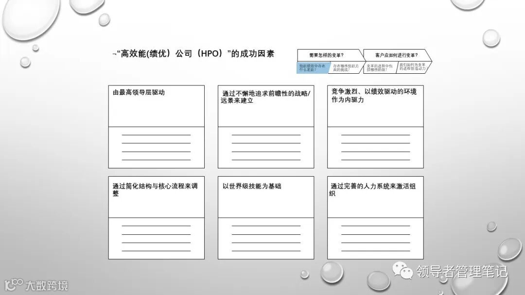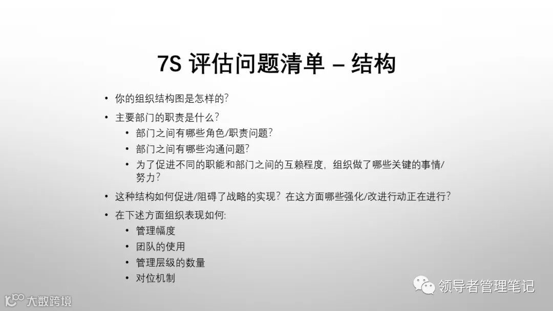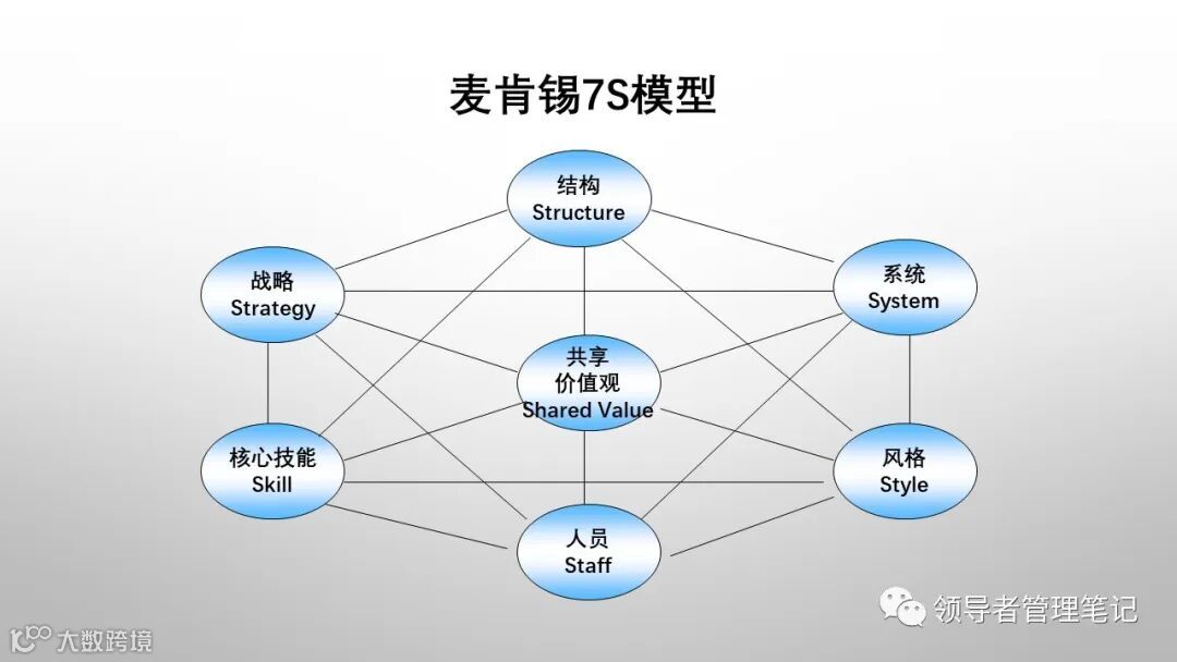 硬件部分相对容易改变,往往是组织变革切入点与常用杠杆;软件部分是组织内涵与核心,需要一定时间的沉淀;共同价值观是企业的DNA,也是最难改变的核心部分。