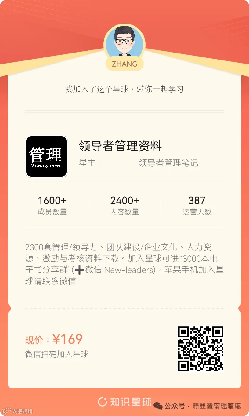 重要消息:由于微信公众号又改版了,即便我每天都按时发文,你也可能收不到信息,甚至可能永久失联。唯一的办法就是把“领导者管理笔记”公号设置星标☆,这样才能每天照常收到文章。加(微信:New-leaders)进领导者读者群。