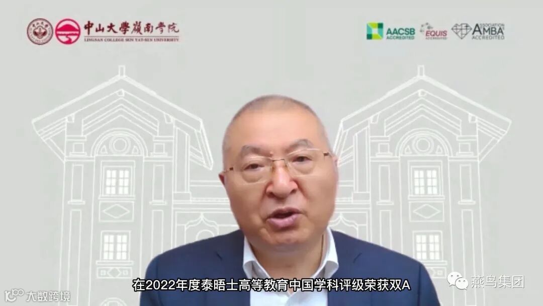 中山大学岭南学院院长李善民教授发来视频致辞。李院长从人才培养、学科建设、人才引进、硬件设施改进等方面介绍了学院近年的发展,表示学院的发展离不开校友的贡献,校友与学院是互相成就的过程,肯定了校友会在加强校友与母校之间联络、促进校友之间连接的重要作用,最后希望校友继续为学院发展添砖加瓦,并预祝活动取得圆满成功。