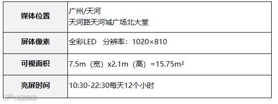 媒体位置明显,正面对着天河城北门的入口处,视觉效果佳,冲击力强。