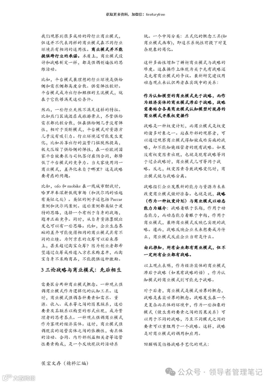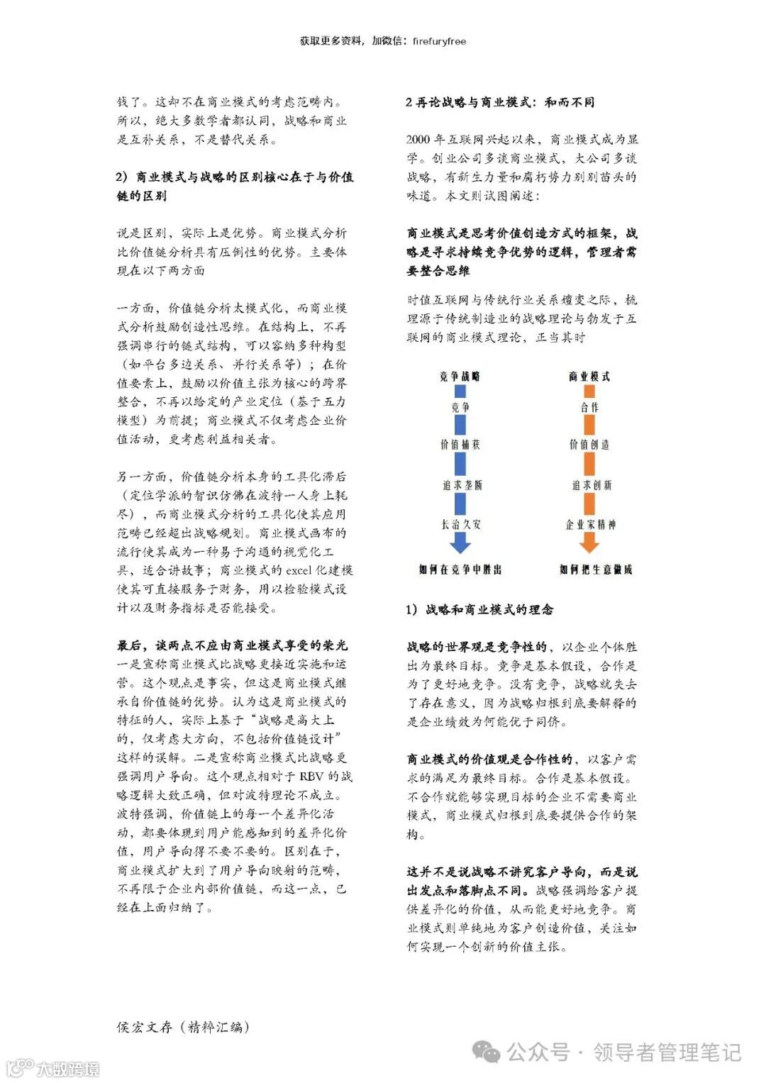 本章通过案例分析和理论思辨讨论了两个在实务中高度相关的概念,指出:商业模式是思考 价值创造方式的框架,战略是寻求持续竞争优势的逻辑。同时,作为认知工具的商业模式和作 为经济实体的商业模式并行不悖,而战略作为一个过程,对两者加以整合和利用