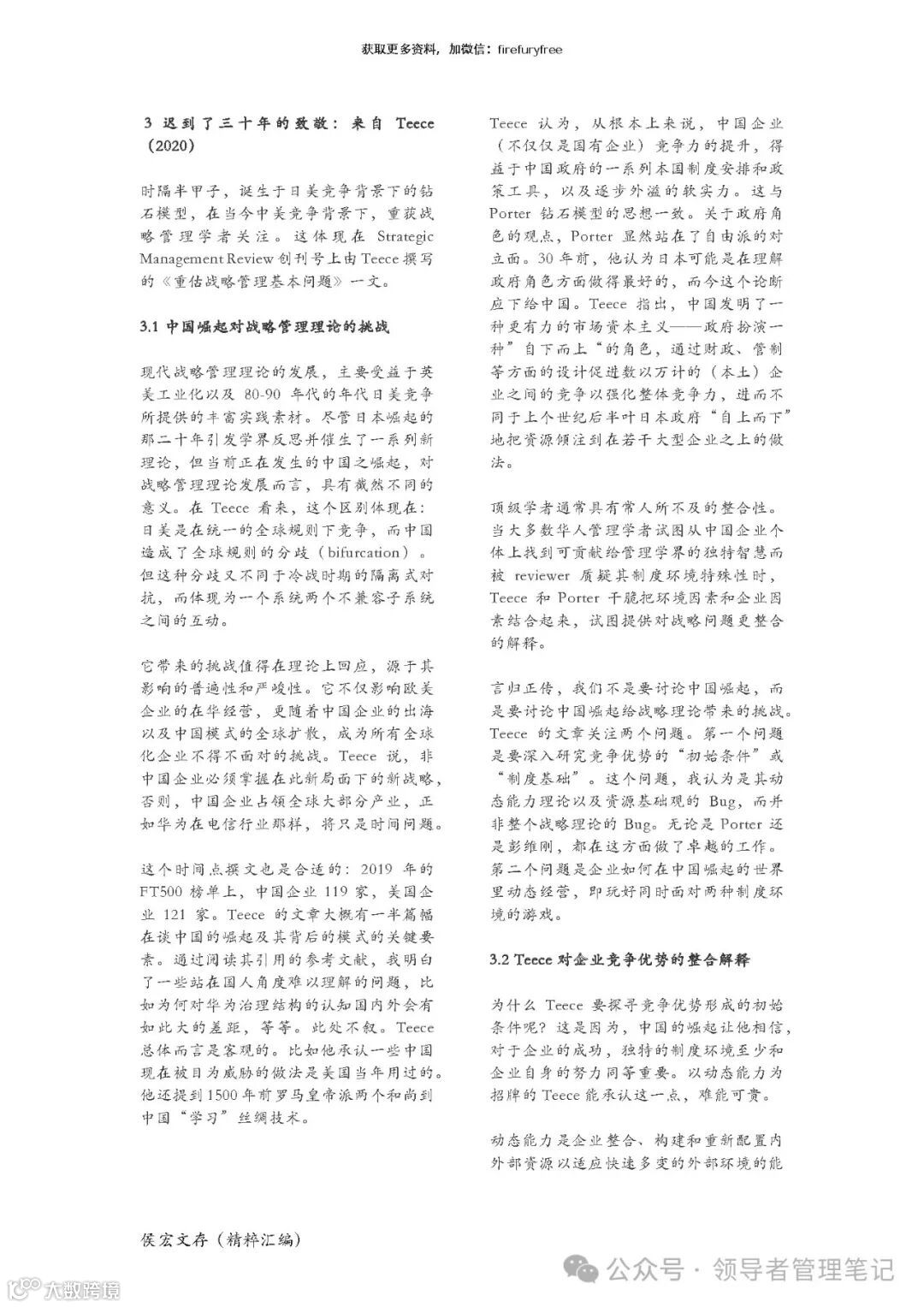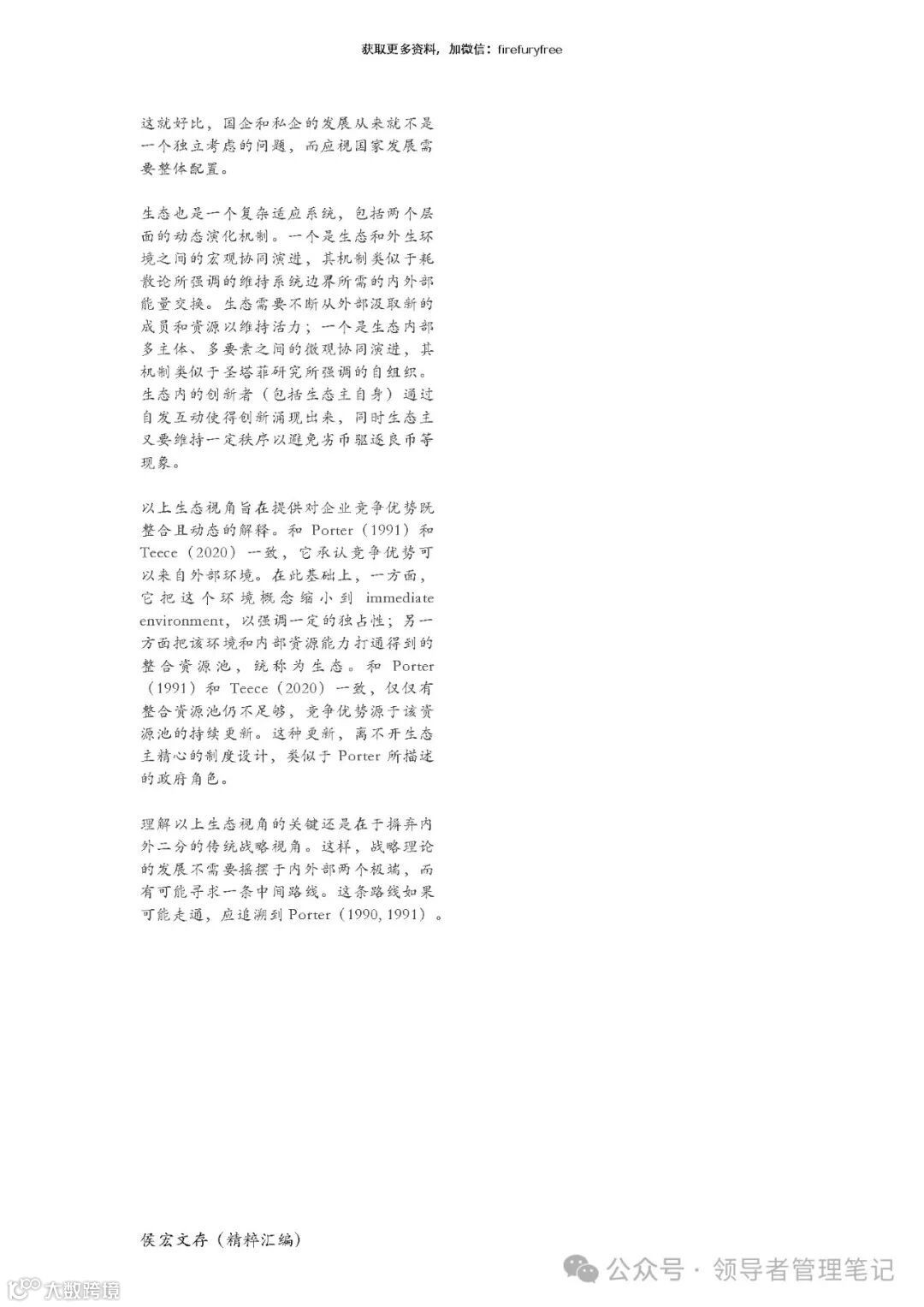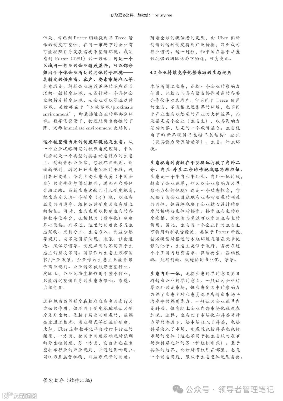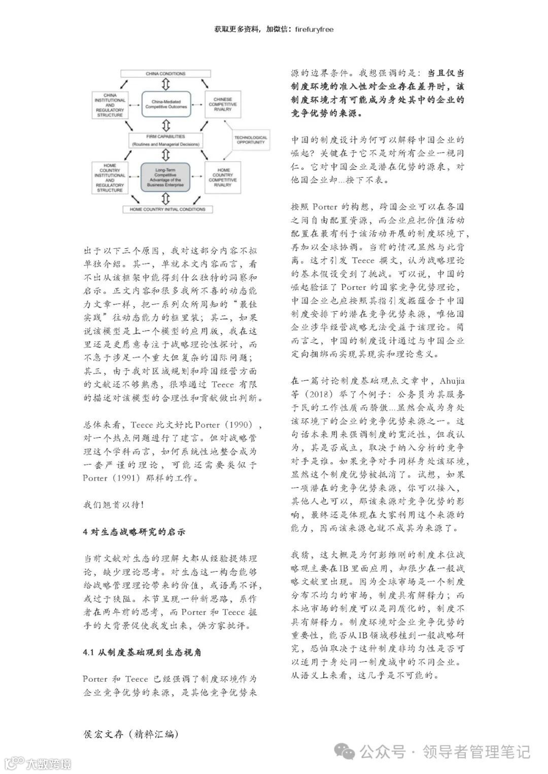 本章部分回答了上一张提出的问题:以另一战略大佬 Teece 反思战略理论的最新文章为契 机,本文介绍了他在中美竞争背景下与波特达成的共识:独特的制度环境至少和企业自身 的努力同等重要。由此引申,生态战略的重要方面是为成员塑造独特的制度环境。