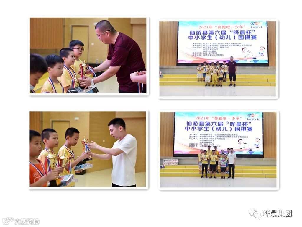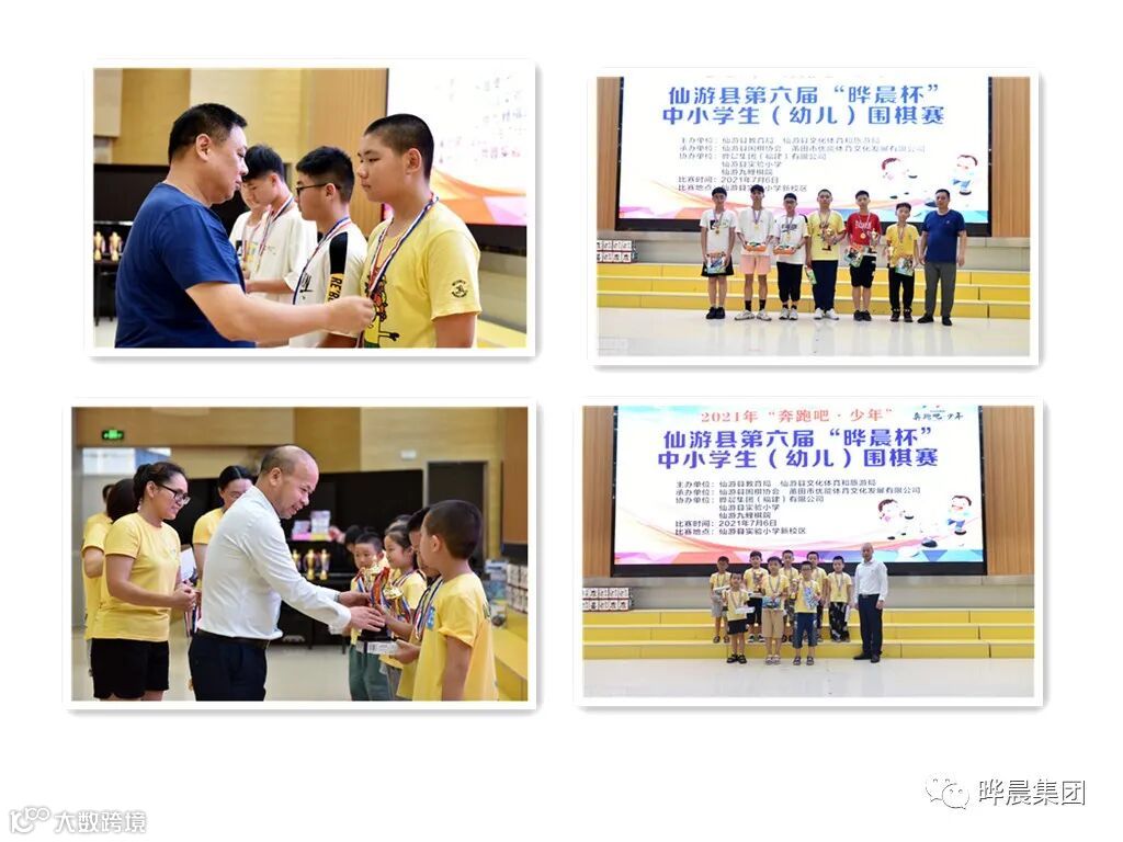 仙游教育局体艺卫股黄国雄,仙游围棋协会名誉会长陈中立,晔晨集团(福建)有限公司党支部书记林玉镇,晔晨集团(福建)有限公司执行总经理毛英星为获奖选手颁奖。