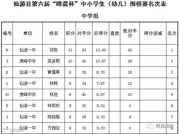仙游县第六届“晔晨杯”中小学生(幼儿)围棋比赛圆满落幕