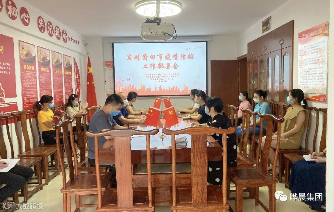 近期,我县枫亭镇发生新冠肺炎疫情牵动着社会各界的心,省委、省政府、市委、市政府、县委、县政府高度重视,启动应急响应,全面动员、全面部署。9月13日上午,晔晨集团党支部书记林玉镇组织召开疫情防控部署会议,各部门负责人参加会议。