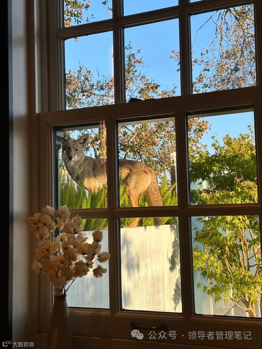 阿尔特曼在旧金山的家的外面,一头年轻的雄性郊狼