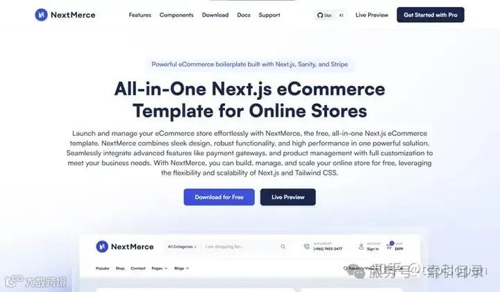 如果您需要一款适用于电子商务的 Next.js 模板,NextMerce 是完美的选择。他们的模板带有预建的购物车、产品页面、结帐流程和支付网关集成,使其成为在线商店的理想解决方案。
