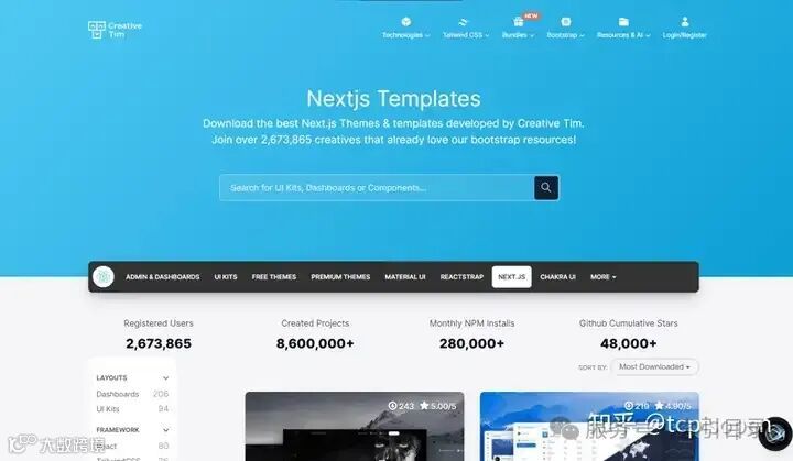 Creative Tim 提供高端 Next.js 模板,其中包含现代 UI 工具包、仪表板和登录页面。许多模板都是使用 Material UI、Bootstrap 和 Tailwind CSS 构建的,因此可高度自定义。