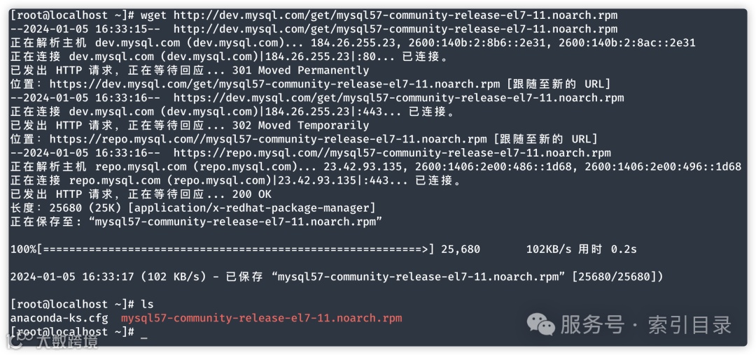 由于 centos 的 yum 源中没有 mysql,需要到 mysql 官网下载 yum repo 配置文件