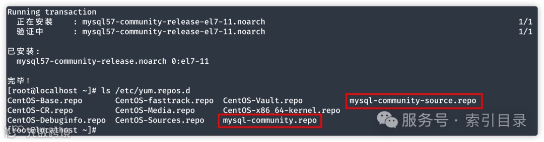[root@localhost ~]# yum -y install mysql57-community-release-el7-11.noarch.rpm