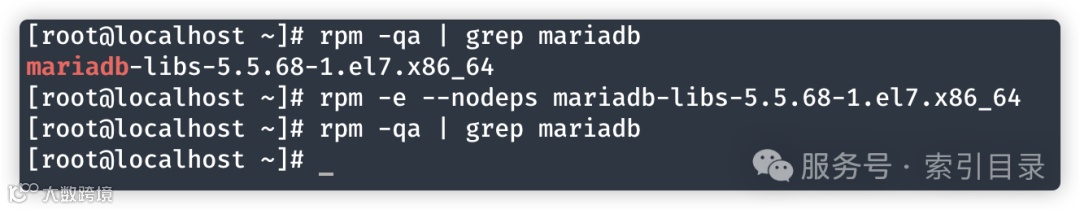 rpm -e --nodeps mariadb-libs-5.5.68-1.el7.x86_64