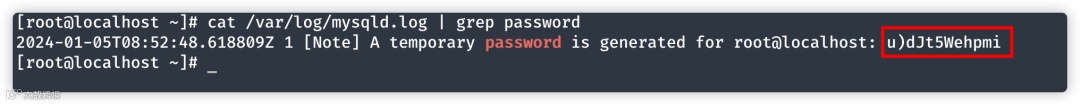 运行以下命令可以查看临时密码,如下图所示,临时密码为:u)dJt5Wehpmi