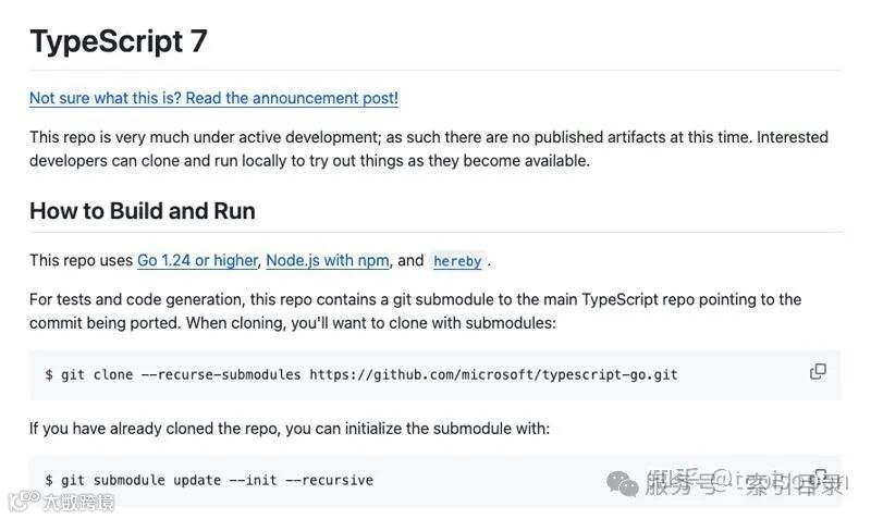 首先,在新版本 7中,底层的原始 TypeScript 编译器将从JavaScript 转移到 Go。也就是说,将有条件地使用 TypeScript 6 (JS) 和 TypeScript 7 (Go)。这样做主要是因为在非常大的项目中使用时会出现扩展问题,当然,也因为速度问题。