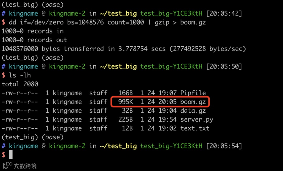 以下是如何生成一个极大的压缩文件(例如1GB)的命令: