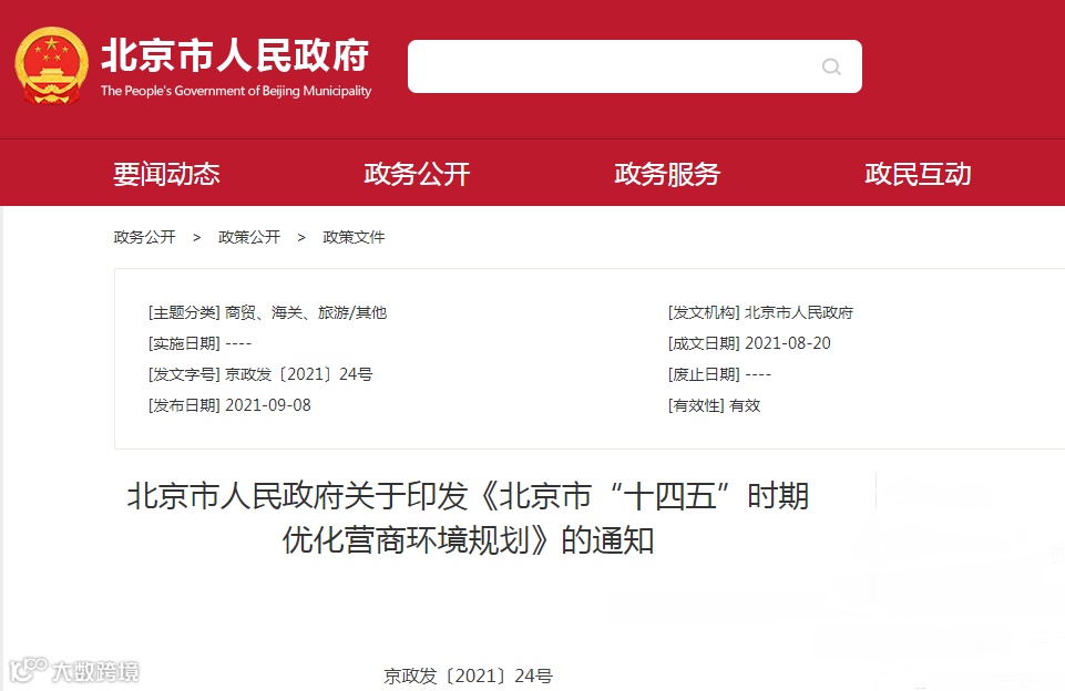 近日,首都之窗发布了北京市人民政府关于印发《北京市“十四五”时期优化营商环境规划》(以下简称《规划》)的通知。《规划》明确了北京市“十四五”时期优化营商环境的指导思想、总体目标和重点任务,是推进首都营商环境改革的行动纲领,是全市人民共建共享一流营商环境的美好蓝图。