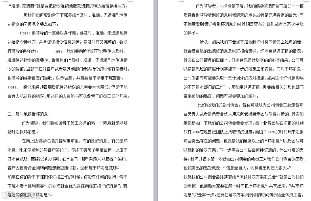 ►领导者说:★骨干员工之所以称之为“骨干”