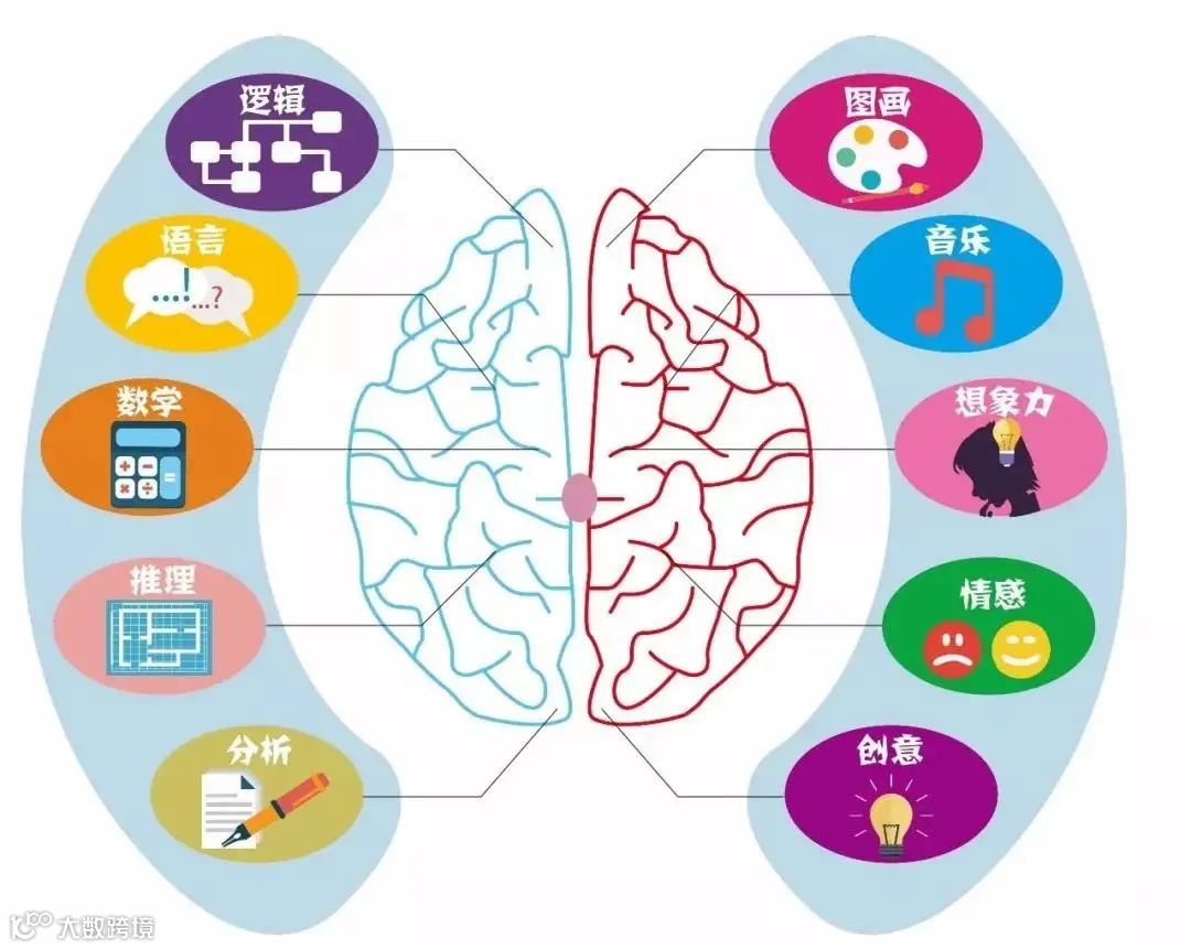 有关大脑功能的研究显示,人的左脑和右脑的差异其实很大:左脑主导推理、因果和语言,这是“逻辑”和理性的所在;右脑则主导艺术,能够记忆观察到的模式、回忆旋律、作诗。治疗癫痫的手术将左右脑之间的联系截断之后,这两边的差异就会非常明显地凸显出来。