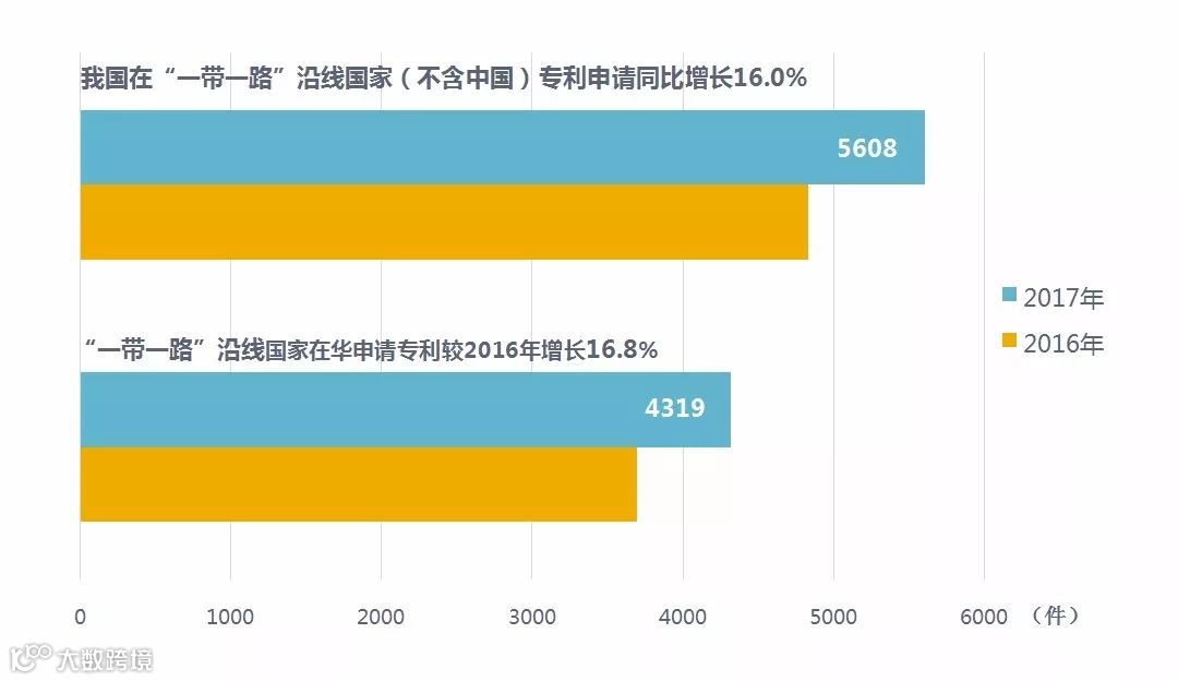 2017年,我国在“一带一路”沿线国家(不含中国)专利申请公开量为5,608件,同比增长16.0%。其中,在印度专利申请公开量为2,724件,在俄罗斯专利申请公开量为1,354件,专利申请初具规模。2017年,“一带一路”沿线国家在华申请专利4,319件,较2016年增长16.8%;在华申请专利的国家数达到41个,较2016年增加4个。