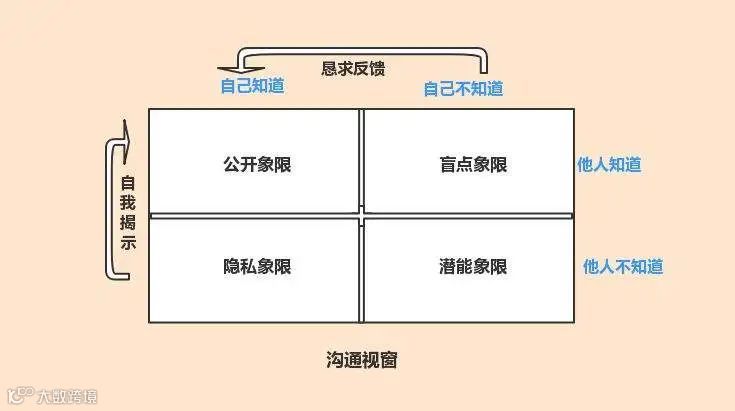 “乔哈里视窗”模式把人的内心世界比作一个窗子,它有四格: