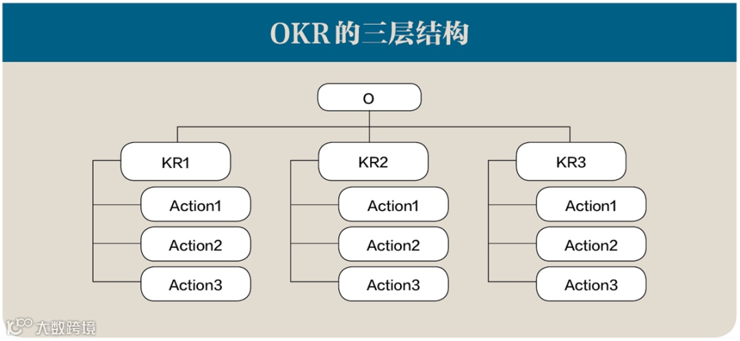 在OKR三层结构中,O是一种追求和方向,KR是通向这一追求的若干个里程碑,Action则是达成里程碑的一系列阶梯。