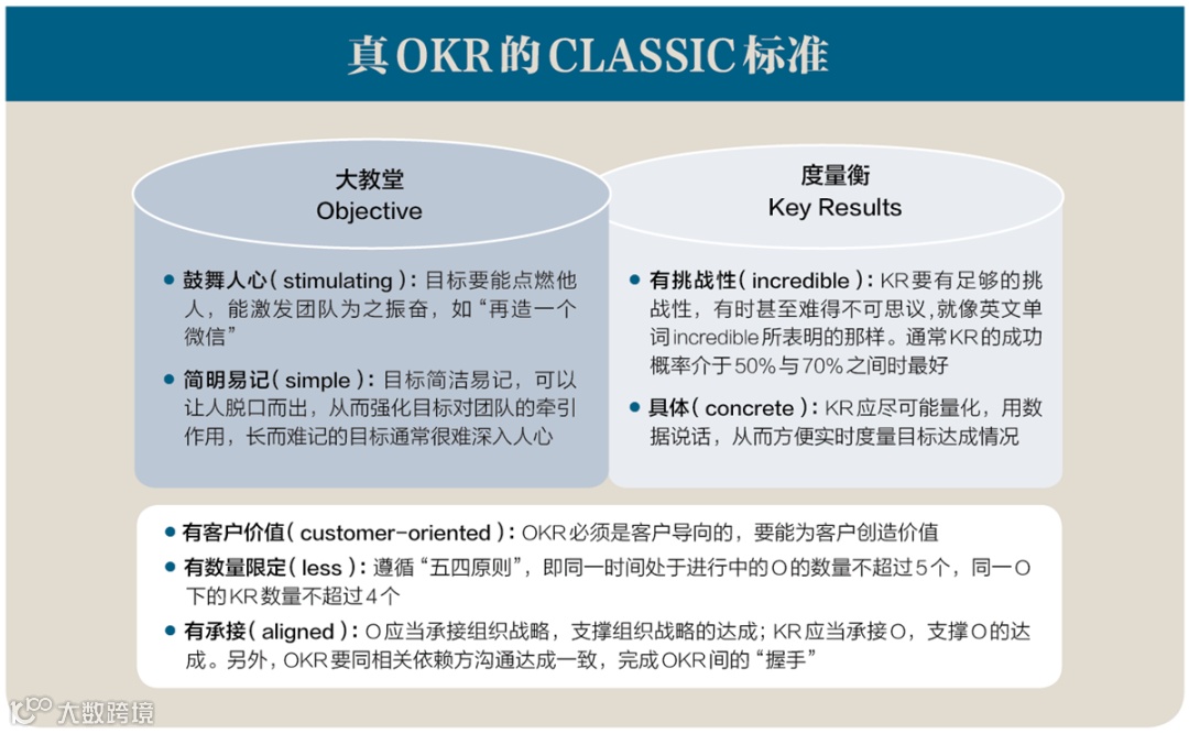 总而言之,遵循CLASSIC标准的OKR,才更有可能是真OKR。如若不然,大多数时候大家得到的都是假OKR,或者只是套用了OKR形式的KPI。