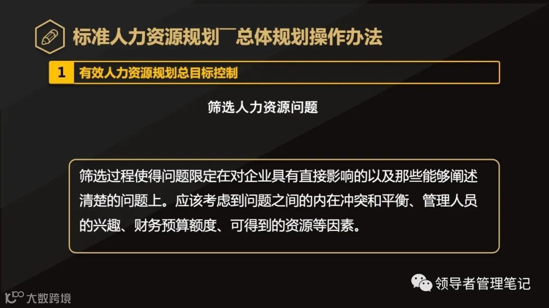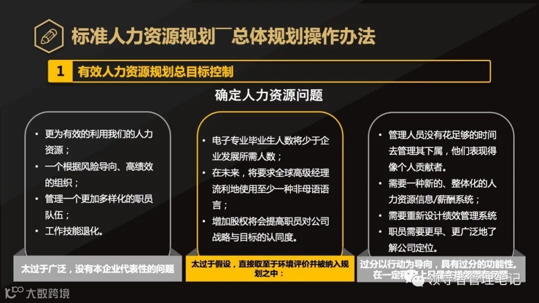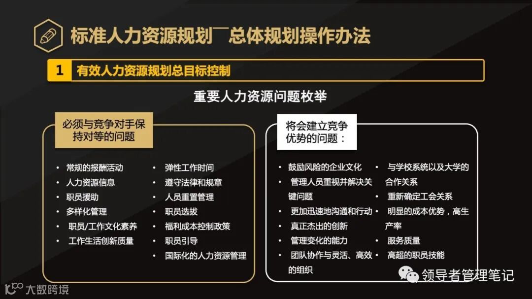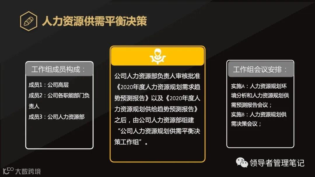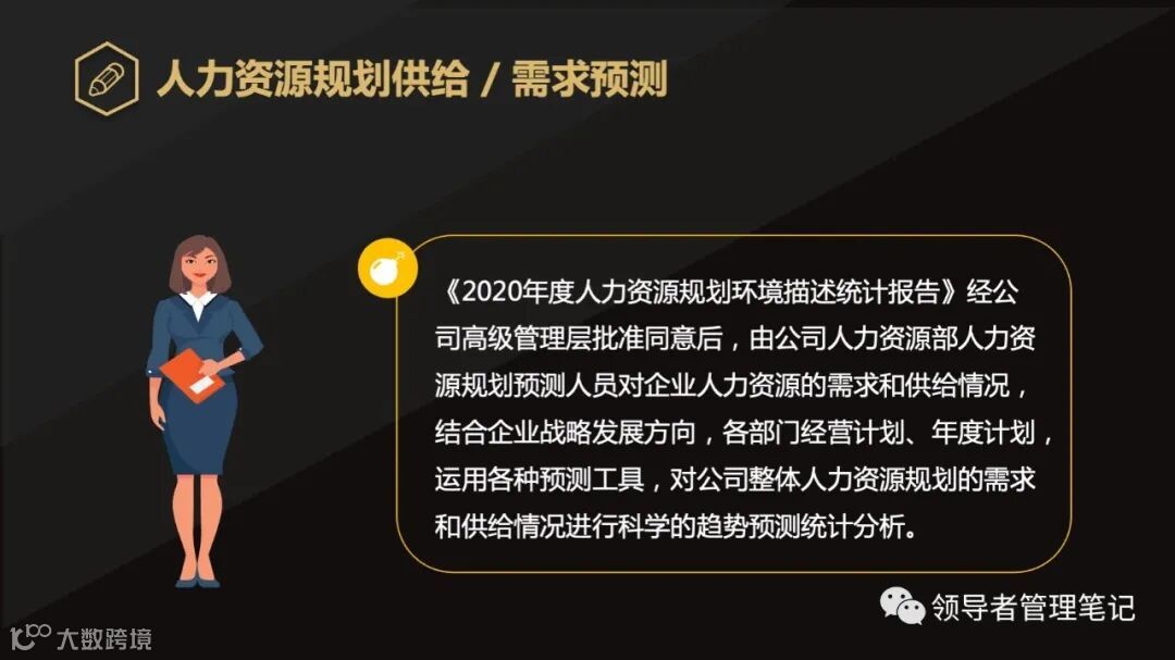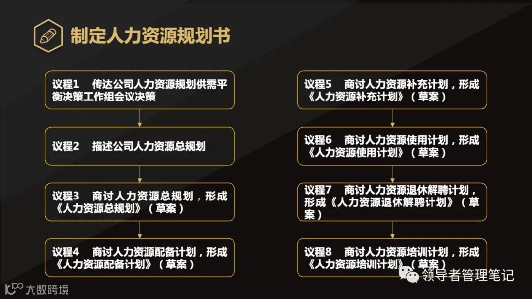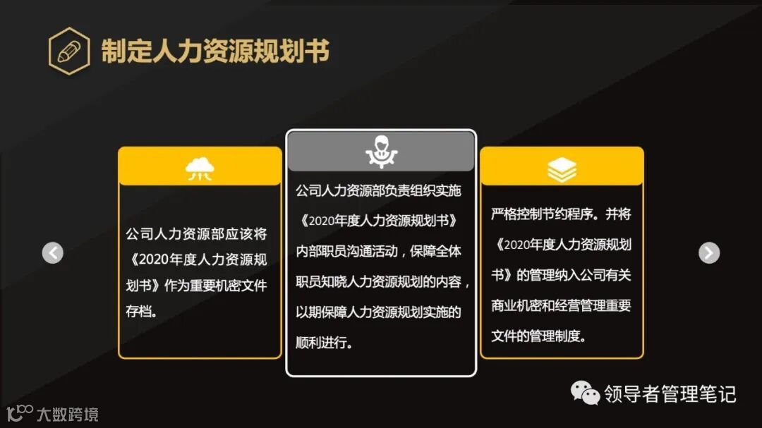 ►领导者说:★为了实现公司整体经营目标,根据公司发展需要的内部和外部环境,运用科学有效的方法,进行人力资源预测、投资和控制;在此基础上制定职务编制、人员配置、教育培训、薪资分配、职业发展、人力资源投资方面的人力资源管理方案的全局性的计划,使公司在持续发展中获得竞争力,为公司整体发展战略提供人力资源方面的保证与服务。