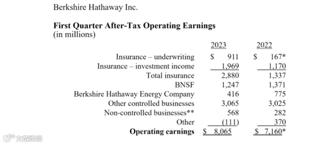 他特别提到,汽车保险公司Geico在2022年遭受了19 亿美元的税前承保亏损,但今年一季度实现了7亿美元的巨额承保利润,已经是一种进步,不过,其中有两个和以往不同的因素影响。Geico释放了去年的准备金,而且,一季度通常是一年中表现不错的,是季节性的。