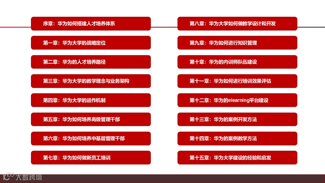 覆盖华为人才培养的15大模块