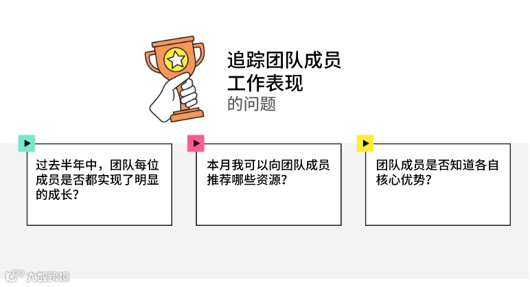 虽然这些问题无法完全取代绩效评估,但这种快速自检的方法能让你养成定期关注员工表现的习惯,而不是等到绩效评估的时候再去关注。