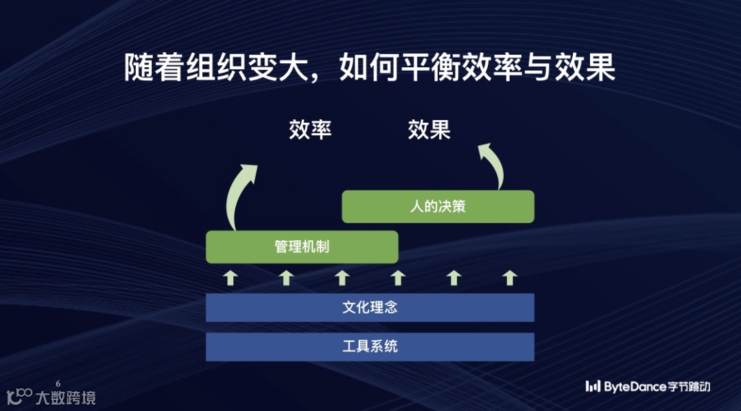 对我们来说,一方面组织规模很大,我们需要关注管理效率,确保管理可以规模化,不过度混乱;另一方面也要关注管理效果,保证组织不僵化,能保持弹性,总能探寻最优解。