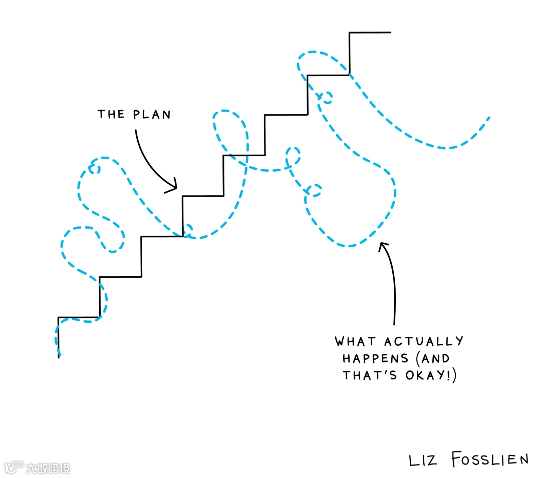 但是,我们在面对不确定性时,焦虑地为每一种可能的未来情景做计划对自己几乎没有任何帮助,而且很容易陷入分析瘫痪。“劳拉·加拉赫博士告诉我们,NASA的团队有一种做法,叫做‘制定一个你会偏离的计划’。”