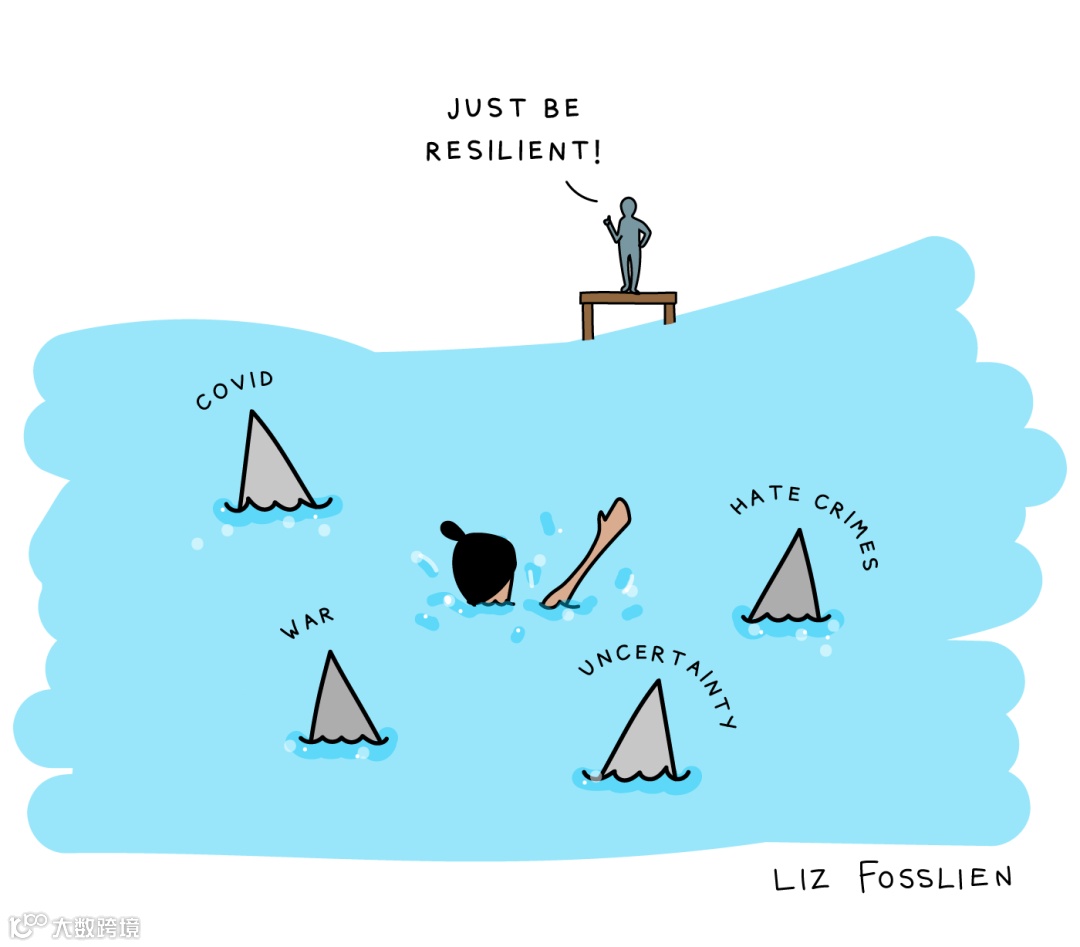 对于所有这类不确定性,有一个建议对大家来说可能耳熟能详。福斯林说:“在过去的几年里,‘弹性’作为回答所有问题的流行答案频频出现。但是应对变化不是个人问题,而是集体问题,它值得拿到团队或公司层面上来解决。我们虽是弹性的支持者,但我们不支持把责任归咎于个人,或免除领导和机构的义务,这对完善组织是无效的。”