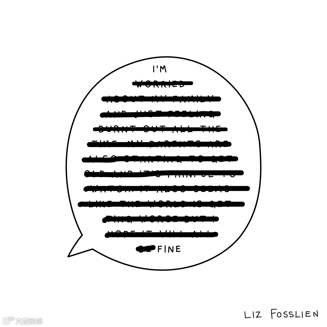 这是《重要的感受:当情况不太好时如何学会接受》(Big Feelings: How to Be Okay When Things Are Not Okay)序言里的最后一句话。这本新书由利兹·福斯林(Liz Fosslien)和莫丽·韦斯特·达菲(Mollie West Duffy)合著。大家可能已经认出这对搭档了,他们也是畅销书《不难过》(No Hard Feelings)的作者。福斯林还运营着一个很受欢迎的 Instagram 账号 @LizandMollie,这是那些在社交媒体上流行的插画的起源地,那些插画真切地反映了近年来许多人经历过的职场焦虑。