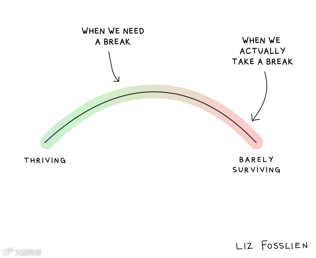 团队是一个可以促进个人修复的集体,它对改善个人情绪非常有帮助,但经常被忽视。就我们自己而言,我们试着把8小时的工作坚持下来,希望在一天结束时,做一些像冥想或散步等恢复活力的事情。但如果在我们意识到这一点之前就已经精疲力尽,那就太晚了。