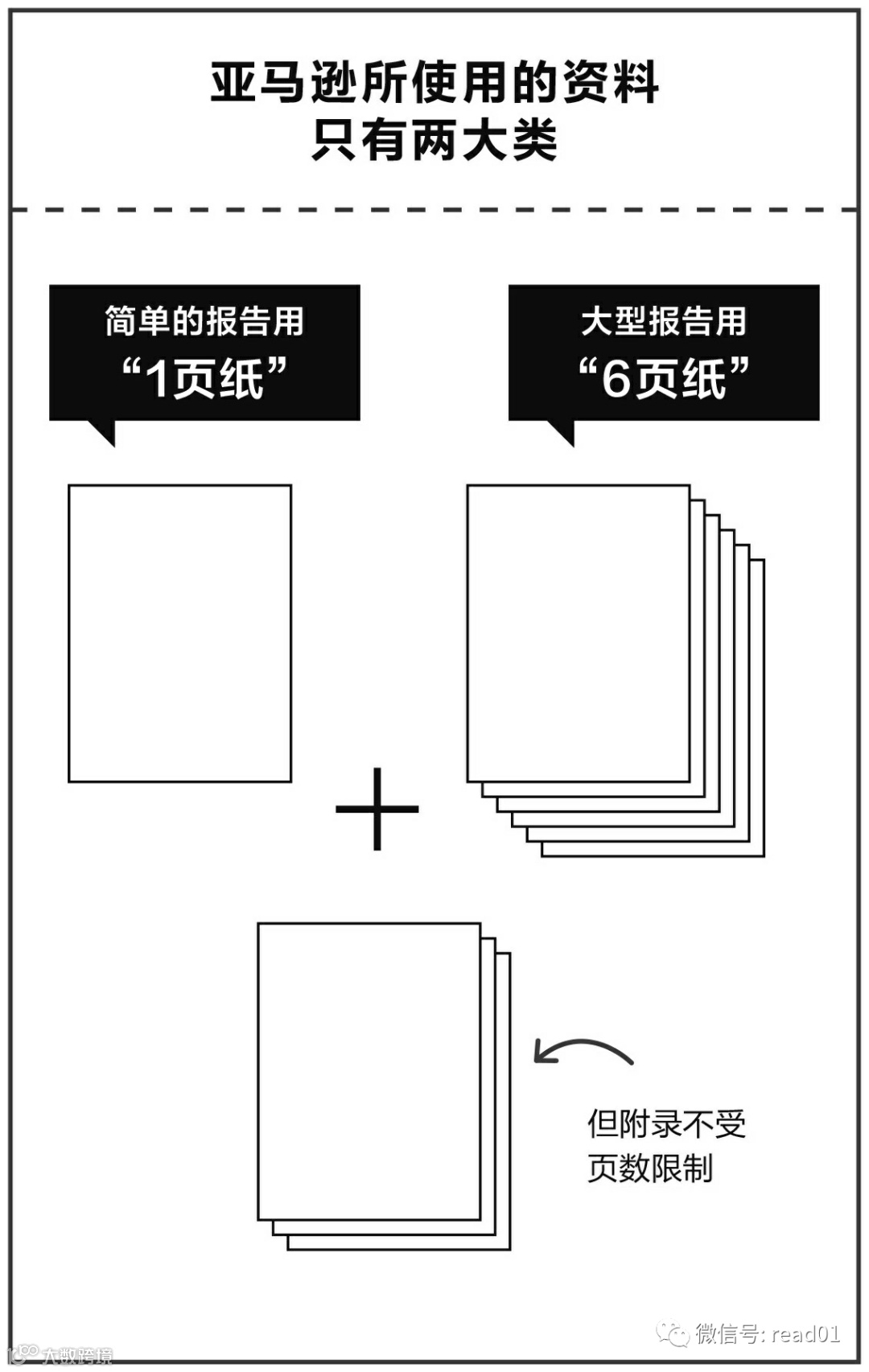 大型报告要控制在6张纸以内除了“1页纸”之外,亚马逊还有另一种形式的会议资料,那就是“6页纸”。