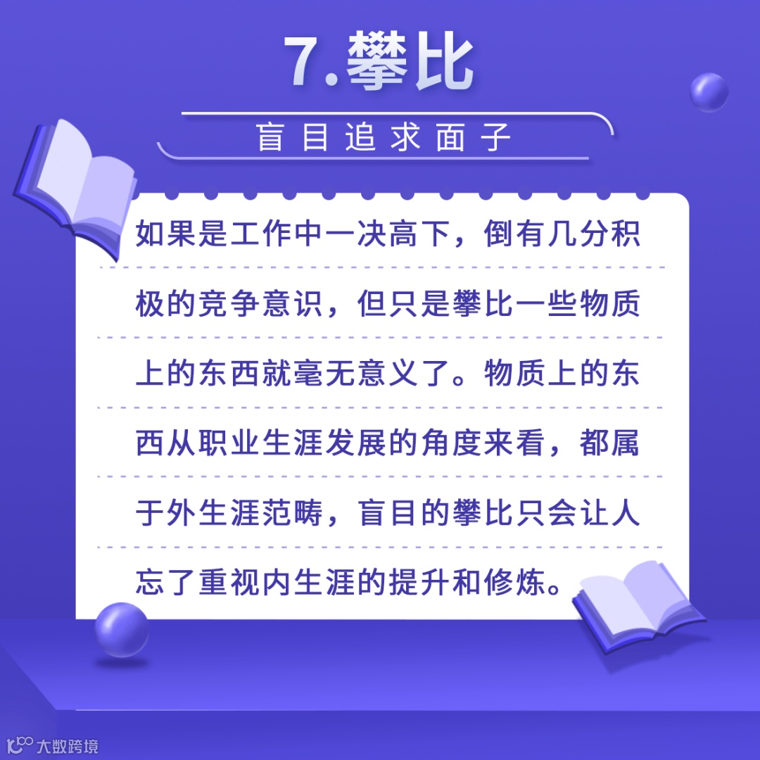 如果是工作中一决高下,倒有几分积极的竞争意识,但只是攀比一些物质上的东西就毫无意义了。物质上的东西从职业生涯发展的角度来看,都属于外生涯范畴,盲目的攀比只会让人忘了重视内生涯的提升和修炼。