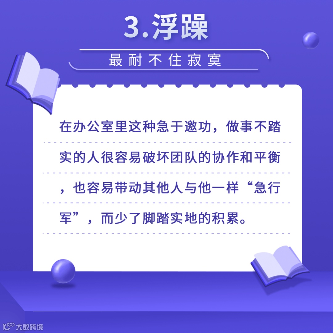 在办公室里这种急于邀功,做事不踏实的人很容易破坏团队的协作和平衡,也容易带动其他人与他一样“急行军”,而少了脚踏实地的积累。