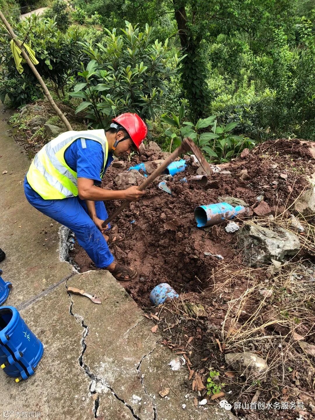 新安镇,自7月中旬至8月上旬,共发生6次因山体滑坡造成管道不同程度受损,输水管道频繁被泥石淤塞,该站及时启动了“长输管线山体滑坡、滚石应急、水源头堵塞应急、污水处理厂防洪应急”等多项预案,组织人员及时对受损管道进行抢修作业,保证了正常供水。