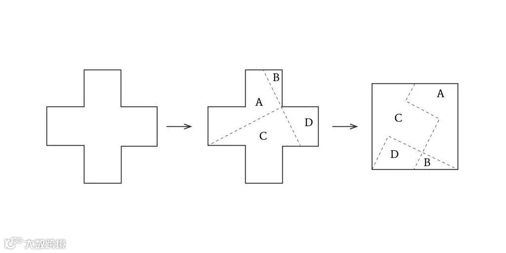 通过这三个步骤,我们可以把一个十字重新切割排列成一个正方形。