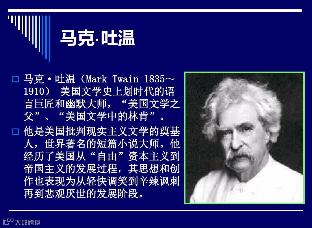 马克`吐温(Mark Twain)是美国最伟大的小说家之一,他既有犀利的写作风格,又有幽默感和表达强烈情感的能力。与许多小说家一样,他在做任何事情时都将激情置于逻辑之上。