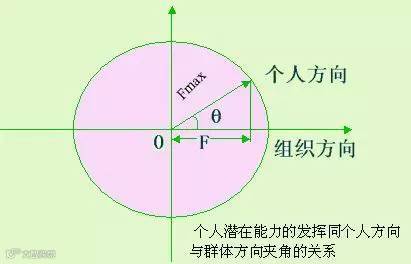 关于个人目标和组织目标相关联,日本学者中松义郎的目标一致理论很值得借鉴。中松义郎曾在他的“目标一致理论”里精辟地论述了个人实际发挥的能力与潜在能力之间的关系的公式:F=Fmax*COSθ(其中F代表一个人实际发挥出的能力;Fmax代表一个人潜在的最大能力,θ代表个人目标与公司之间的夹角)。从这个公式中我们不难看出,当个人目标与组织目标方向一致,即夹角θ为0时,一个人实际发挥出的能力最大。