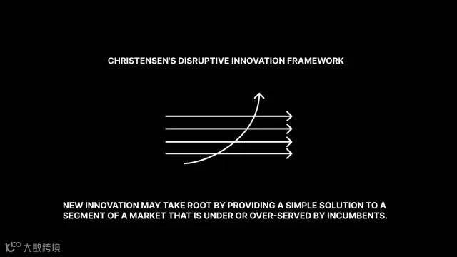 按照克里斯滕森的说法,颠覆性创新的过程大概是这样的:小公司一开始先是从低端市场向既有企业发起挑战,然后逐步蚕食到高端市场。